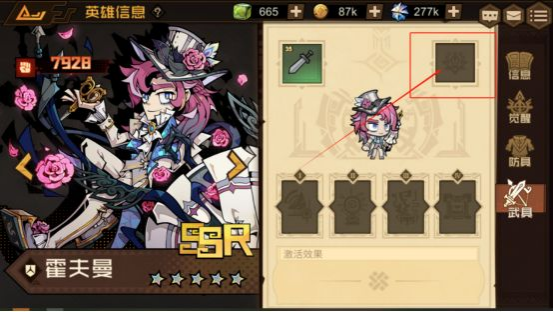 ps:任务一定要做,不然没办法升级玩下去,装备武器可以一个一个英雄点击查看哪个可以装备。做完主线任务第一天第二篇的时候,基本可以通过第一章前两关。