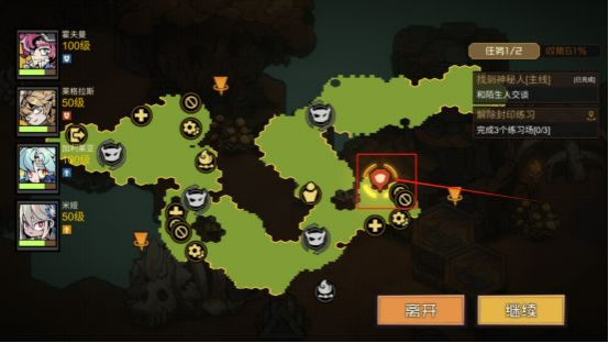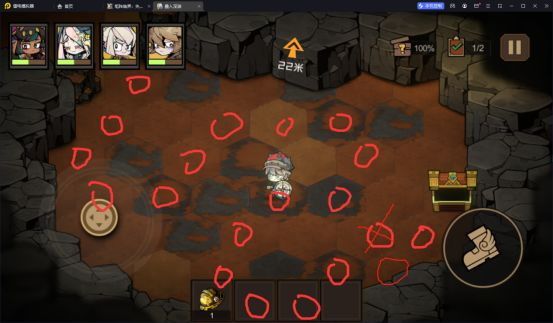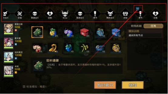 3.模拟中在选择出现洞窟的时候可以选择自己需要的洞窟去打,有些是物资的,有些是回血的。记得在训练中把地图逛逛,有些有宝箱的。