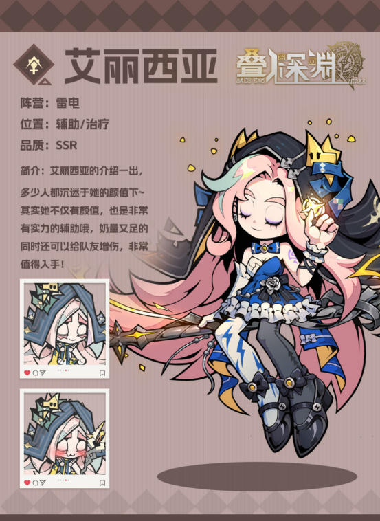 艾丽西亚作为魔法学院的天才毕业生,专精闪电系魔法。她在6岁时就成功召唤出闪电,并在10岁那年习得最高级闪电系魔法“神霆”。12岁以魔法学院史上最年轻的毕业生的身份完成了所有学业。她所使用的法杖,是她独自从深渊深处寻回并打造的,这会让她的能力更进一步。
