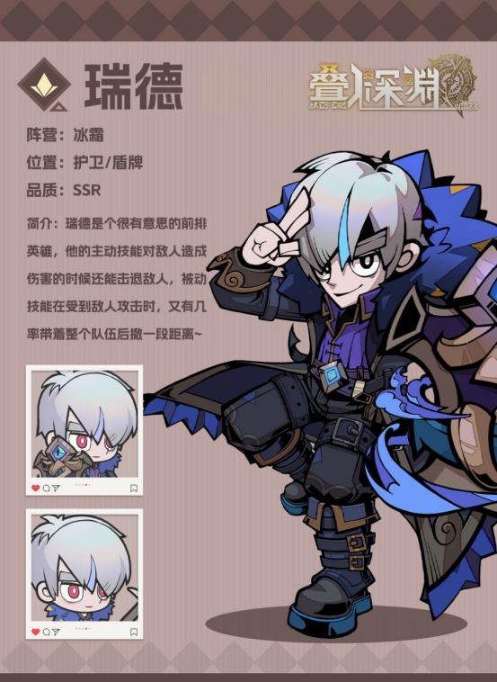 瑞德是天命教会执行厅的一员。他总是以一身黑色的装束出现,手持一个巨大的盾牌作为武器。作为执行厅的得力干将,瑞德总是出现在深渊的第一线,执行天命教会下达的危险任务。