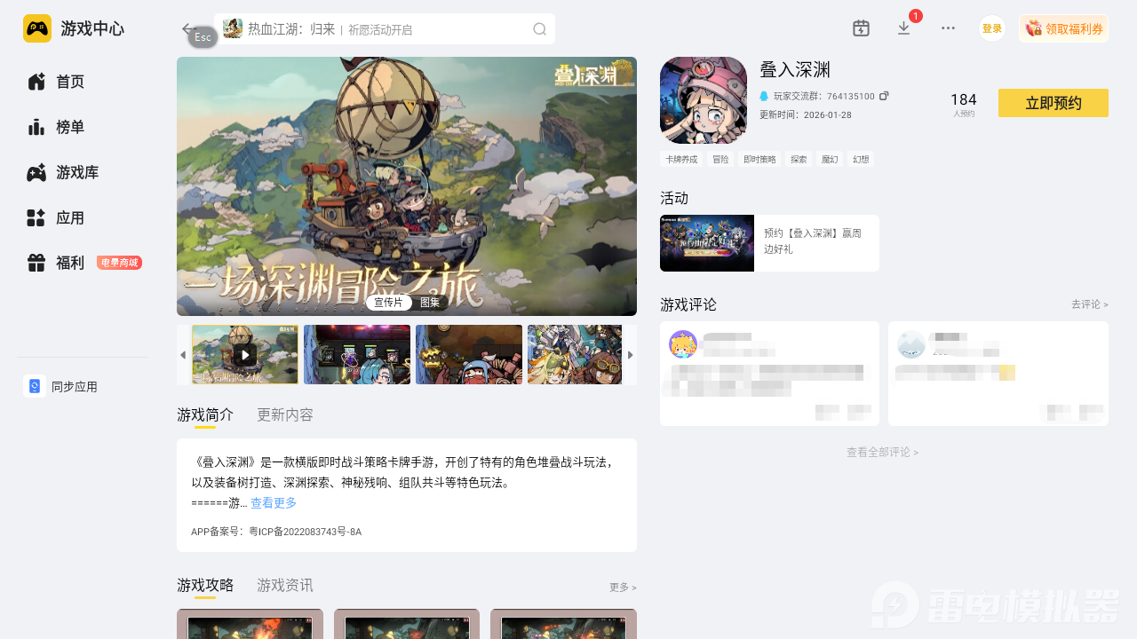 好了,上文针对叠入深渊预约的说明还是很详细的,对于广大玩家来说,若是希望能提前去知晓其中玩法动态等消息,同时更加快速的解锁进入体验,那么去使用雷电模拟器来帮自己就很重要,近期有想法就抓紧去行动起来吧。