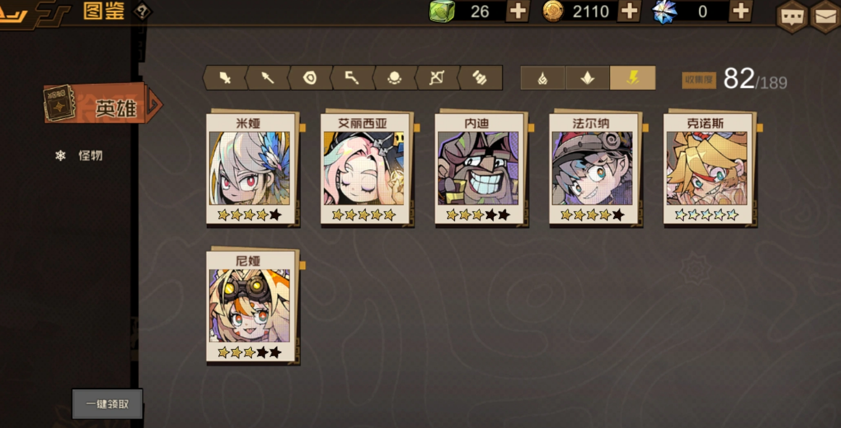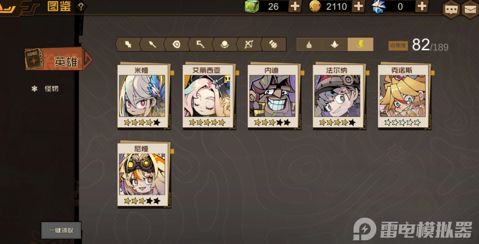 然后就是组建队伍,这里首推纯雷队,该队伍通关效率最高,适合快速推线,具体配置为法尔纳、尼娅或者克诺斯、米娅、艾丽西亚,若未抽到米娅,可选择哈伦克、伍迪、小丑、艾尔莎,这套阵容成型快,输出稳定,适合新手玩家来进行开荒。