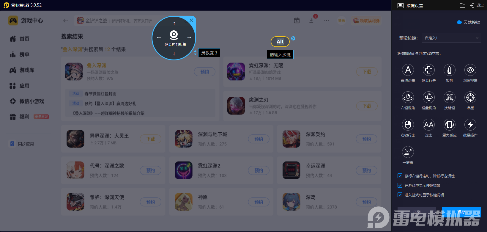 在这款游戏中,我们要合理运用策略和阵容组合,而通过触屏操作难免会遇到失误等问题,好在雷电模拟器带来的自定义键位功能很是合适,让我们可以把移动、技能释放等操作更改为自己习惯的键位,不仅能实现快速打击,同时也能更好的躲避boss攻击,规避手机触屏的误触问题,让战斗策略完美落地。