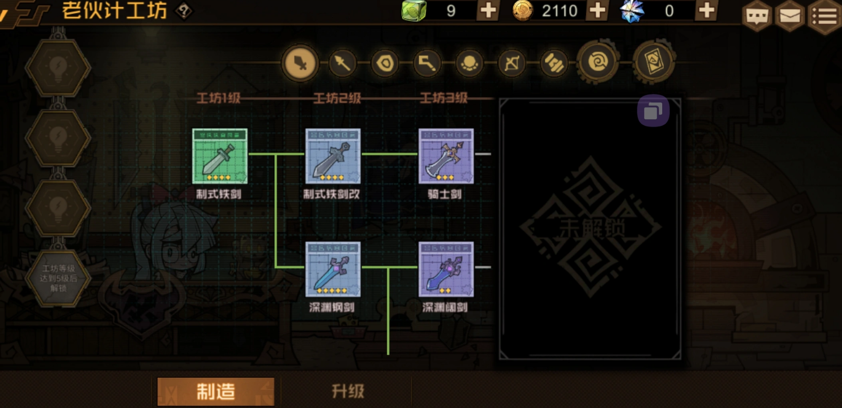 武器图纸作为提升战力的重点,每种星级的武器图纸仅需研究一次,后续可直接用钻石制造;升级工坊能让我们去解锁更高武器等级上限,优先提升工坊等级很关键,也能去保障自身的高阶武器制造。