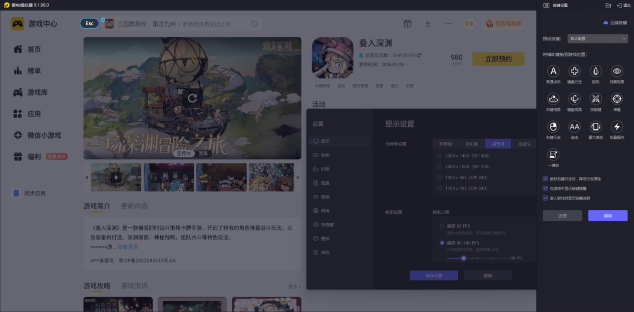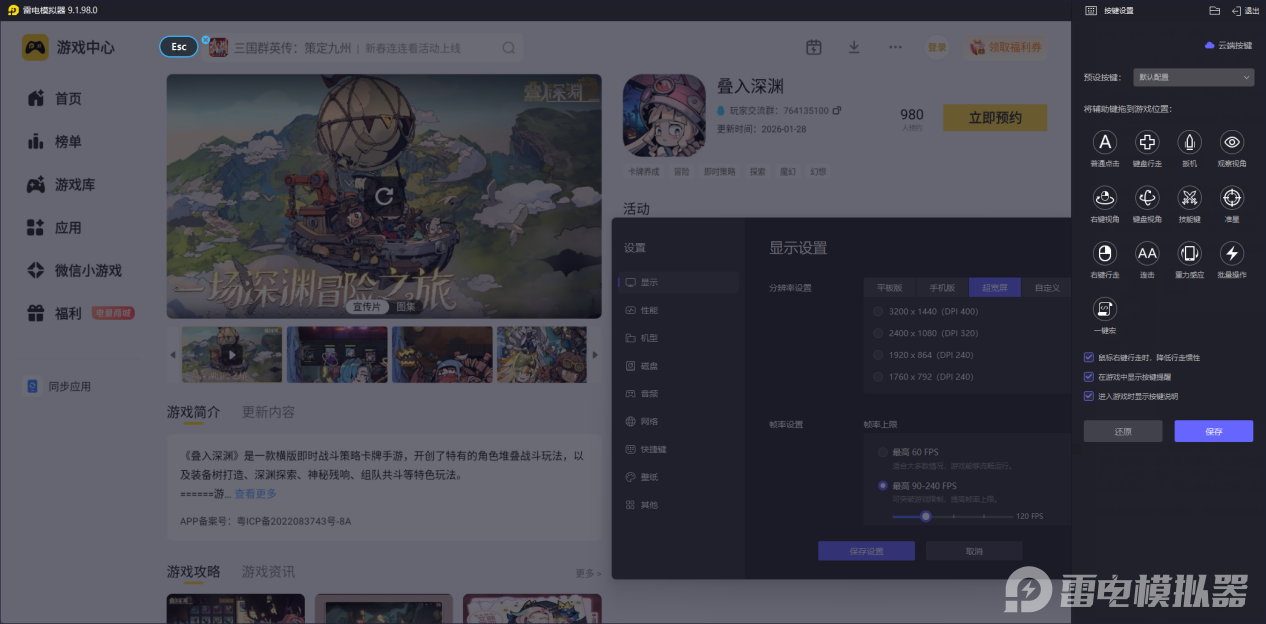 除此之外,雷电模拟器的实用功能更适配冰队攻略实操,支持自定义键鼠映射,可精准设置控场、增伤、输出等技能按键,避免触屏误触,轻松把控技能循环与出手时机。同时其低资源占用特性,即便中低配电脑也能流畅运行,无论是新手熟悉阵容操作,还是进阶玩家攻坚高难度关卡,都是电脑畅玩叠入深渊、玩转冰队的绝佳辅助。