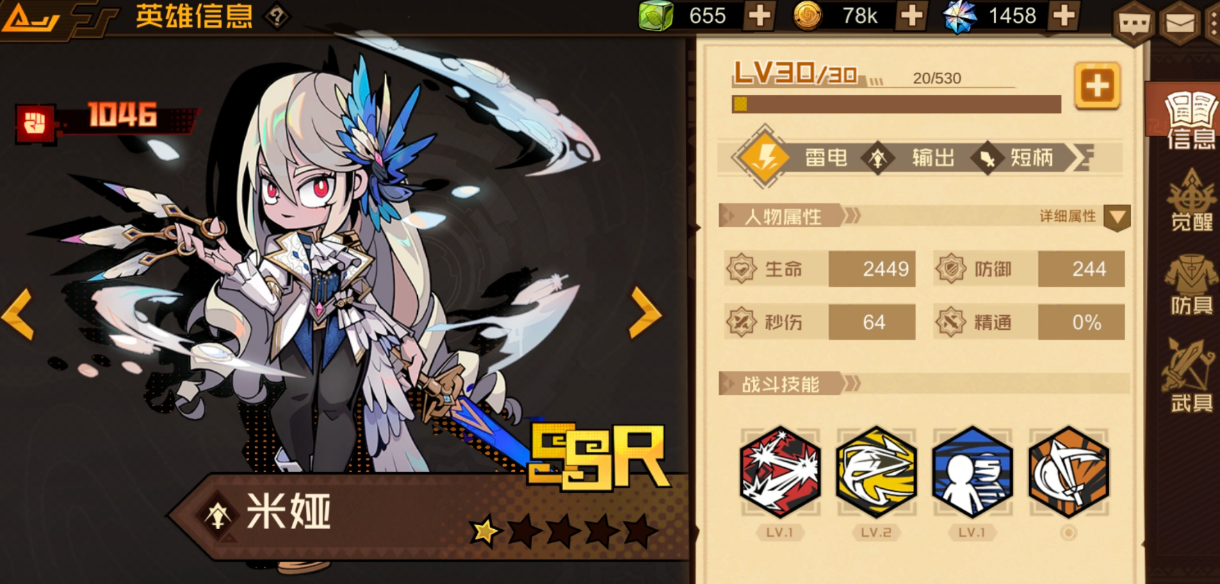 游戏内,米娅作为ssr限定电系输出角色,以单体爆发和持续输出为核心,是雷队中不可替代的主c位,尤其在依赖感电buff阵容中表现突出。输出高度依赖攻速,通过被动的追击效果实现高频伤害。其被动技能拥有30%概率触发追击,6星后概率提升至60%,配合雷队感电的攻速加成,能快速叠加伤害,实现高效输出。