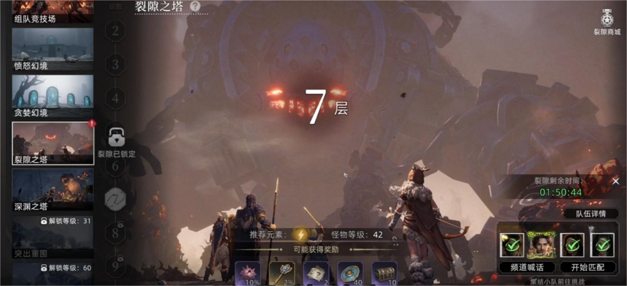 作为《荒原曙光》里的核心战力养成玩法,裂隙之塔的解锁条件并不复杂,玩家达到指定等级后就能解锁该活动,之后只需获取裂隙塔钥匙,就能开启挑战。它的参与方式很灵活,既可以单人独自探索,也能和三位好友组队挑战,而且每日还有四次助战奖励可以领取,组队参与不仅能降低难度,还能提高探索效率。