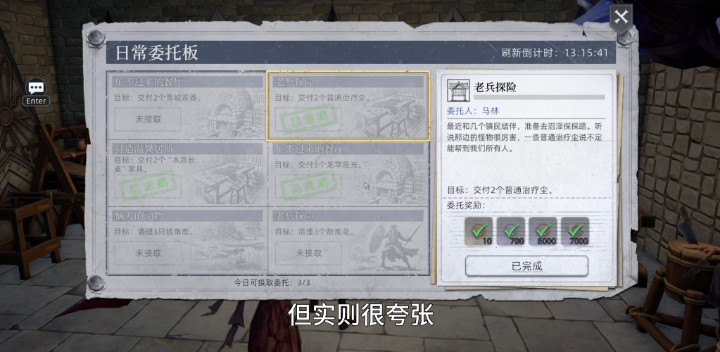 它的获取就比较简单了,完成每日刷新委托以后就能顺利的领取,其中包括了采集、击杀、递送等多种不同的形式,并且难度上并不是很高。