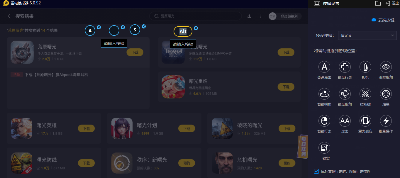 大家也发现了吧,手机去操作进行捕捉的时候,都是自己通过触控方式来操作的,难免会遇到有失误的问题,而去借助雷电模拟器来帮自己就能很好的优化,该工具支持自定义键盘,玩家可以选择把技能释放、移动、视角调整等操作直接绑定到鼠标和键盘上,比手机触屏操作更精准高效,这样一来,我们在用鼠标控制视角旋转的时候就能快速锁定宝箱怪位置,然后再用快捷键完成连招以及闪避等操作,则是可大大提升捕捉的成功率。