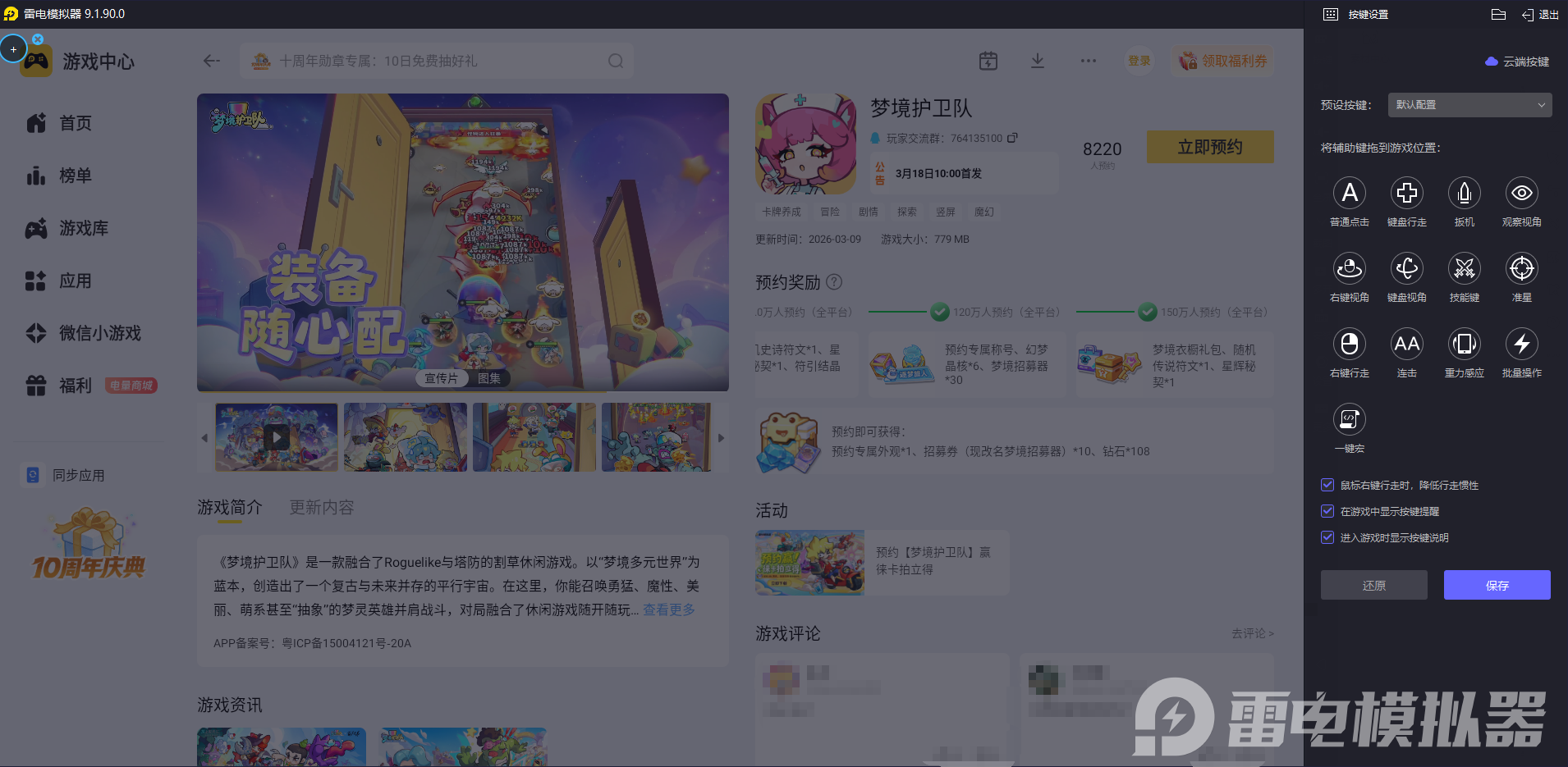 梦境护卫队需要灵活调整阵容、及时释放大招,手机触屏容易误触,技能衔接不流畅,尤其是面对密集小怪或BOSS时,一点失误就可能输。雷电模拟器能自定义键鼠映射,启动游戏后自动匹配预设键位,鼠标控制阵容布置和视角切换,键盘释放技能、切换角色,操作精准又跟手,技能衔接更流畅,轻松打出合理阵容搭配,大幅提升通关效率。