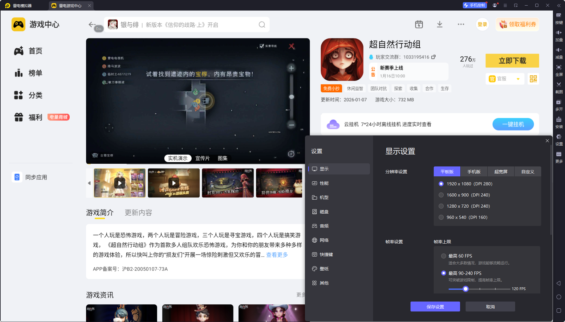 S3赛季新增“秦陵龙宫”地图,包含水位升降、机关石门等动态机制,以及BOSS战的高频技能特效,秦帝的秒杀抬手动作、宝箱怪突袭动画。雷电模拟器通过 4核性能优化,帧率可以稳定120帧,即使在高负载场景下也能保持画面流畅,避免手机常见的卡顿、发热问题。新赛季的收藏品、武器涂装及联动皮肤、眨眼特效,在雷电模拟器的2K/4K分辨率支持下细节更清晰,大屏探索地宫时沉浸感更强。
