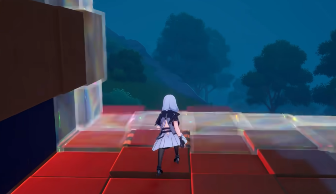 接着玩家就可攀爬上去,往边缘处探索,此时就会生成新的区域,在方块还处于透明阶段,没凝结成红色实体时候暂时不要上去,容易掉落。另外较矮的方块墙是可以攀爬,但需要注意不能失手,或者是跳跃方块平台的时候不要落空,不然也会掉下去。