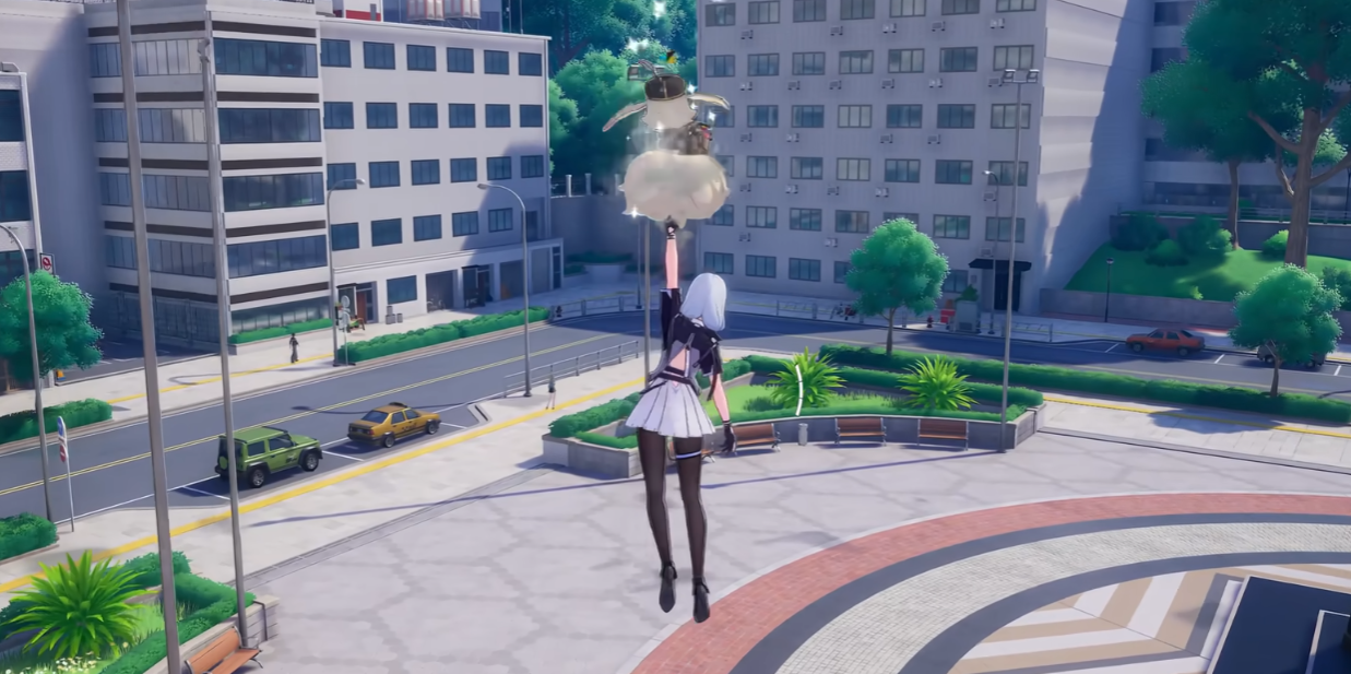 异环的飞行系统靠灰色小鸟造型的悬浮飞行器实现,角色单手抓握飞行器就能在空中移动,身体和双腿还会跟着飞行姿态自然摆动,很有动感。启动飞行的操作很简单,在地面或空中连续按跳跃键就能升空,长按跳跃键可以进入巡航模式,松开按键就切换成自由滑翔。