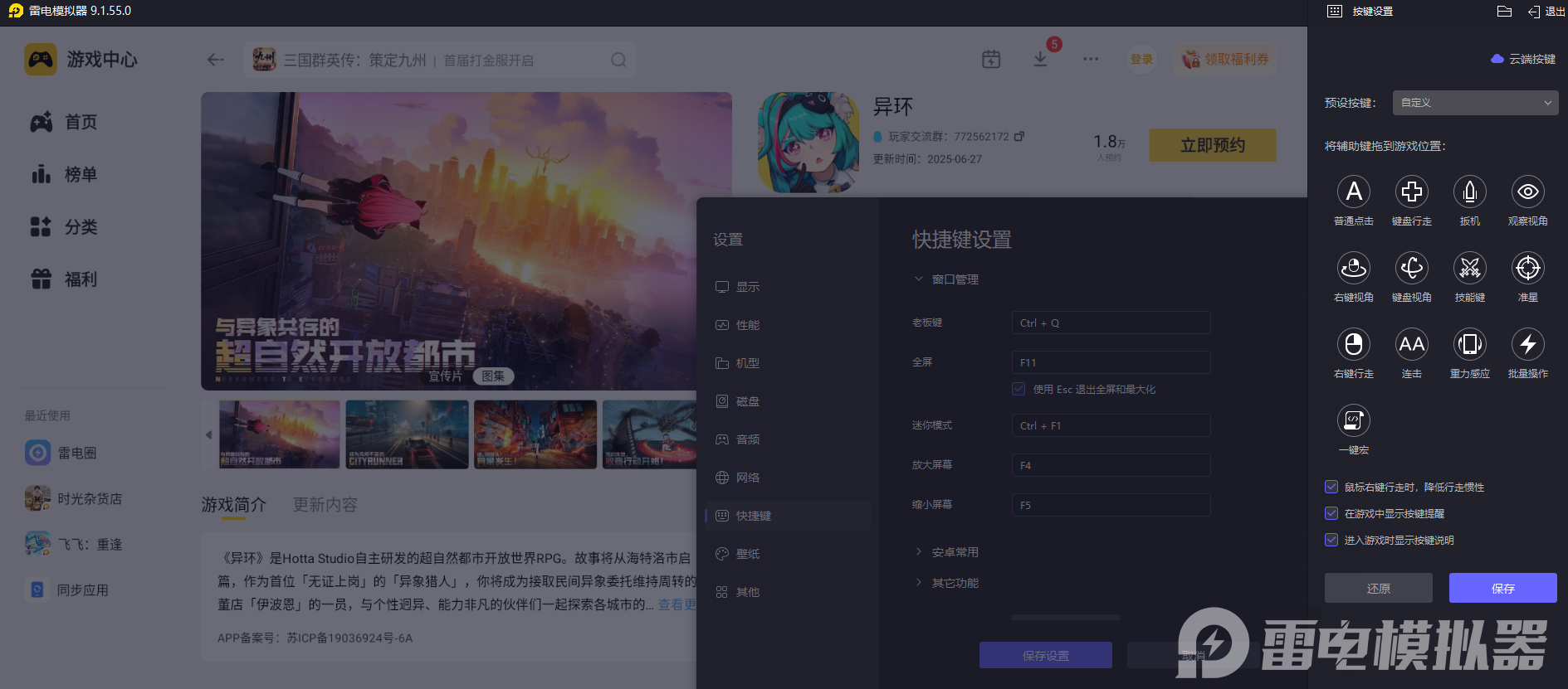 用雷电模拟器玩《异环》,操作体验会大幅提升。它支持键鼠映射功能,还自带预设按键方案,不用手动复杂调试就能上手。用WASD键控制角色走位比手机触屏灵活得多,技能可以绑定键盘数字键,触发干脆利落,能轻松打出丝滑连招。同时还能避免触屏误触的问题,不管是快速闪避攻击,还是精准瞄准目标,操作精准度都远超手机。