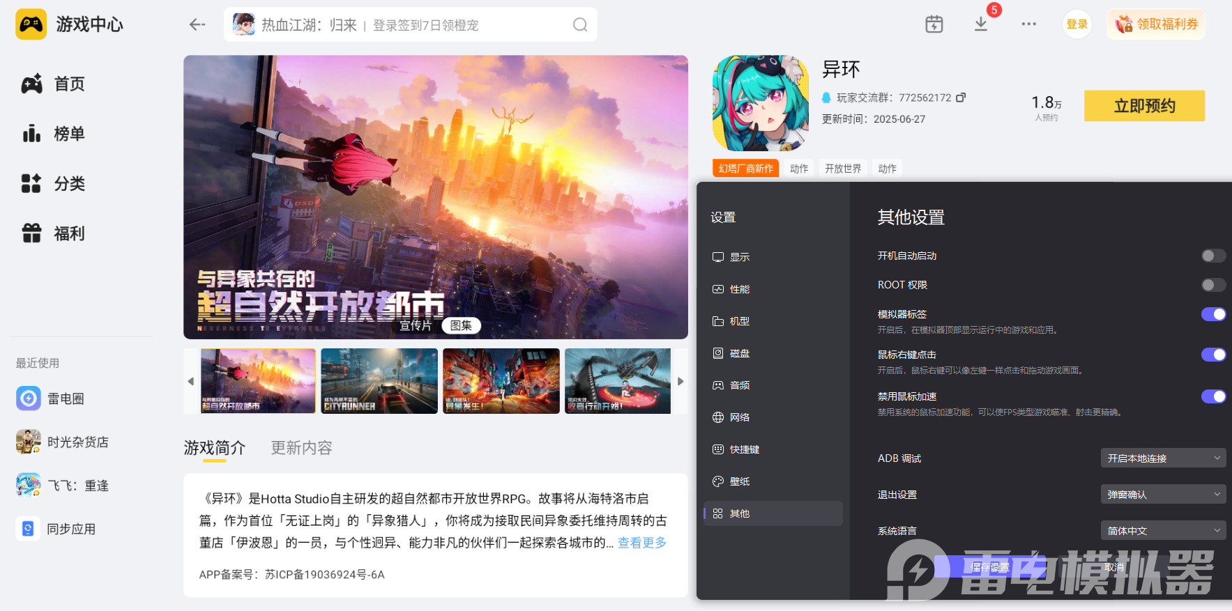 异环什么时候正式上线就给大家介绍到这里啦。等待《异环》正式上线的日子里,玩家们可以提前了解游戏相关信息,做好体验准备。大家记得关注雷电模拟器预约渠道,一旦公测开启就第一时间登录,用更舒适的方式,开启这场期待已久的精彩旅程。