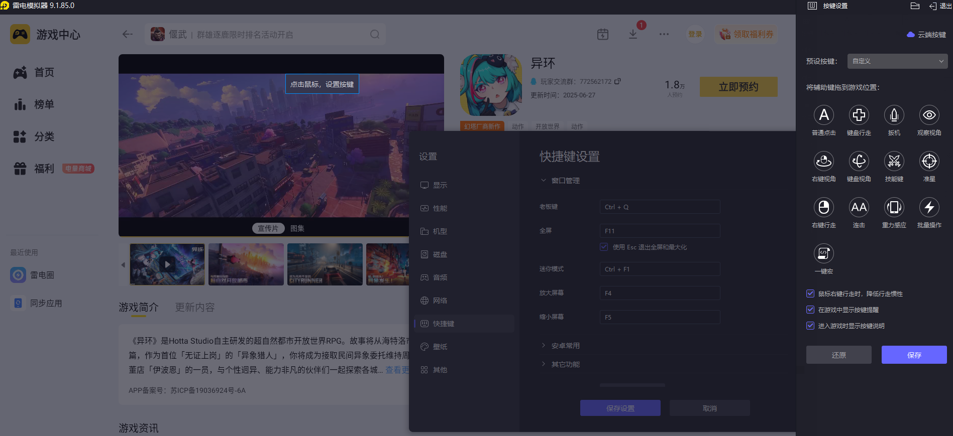 《异环》拥有双视角战斗、载具驾驶、解谜互动等多样操作场景,触屏操作易出现误触、反应延迟的问题。雷电模拟器的键鼠映射功能刚好解决这一痛点,玩家可自定义按键布局,将技能释放、移动、普攻等操作分配到顺手的键盘按键上,配合鼠标精准控制视角和瞄准方向。不管是战斗中的连招衔接,还是驾驶载具时的方向把控,都能更灵活顺畅,大幅提升操作容错率。