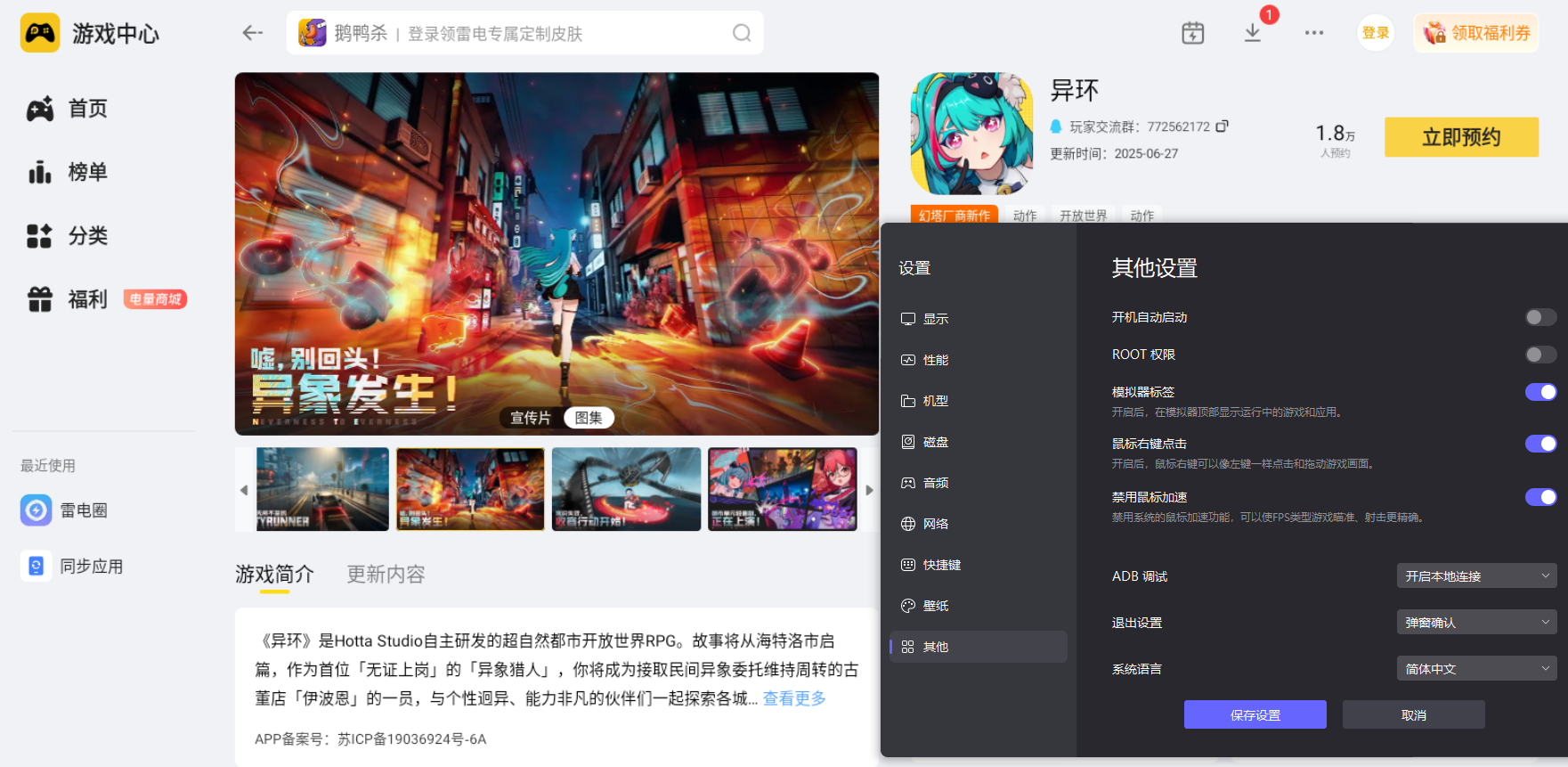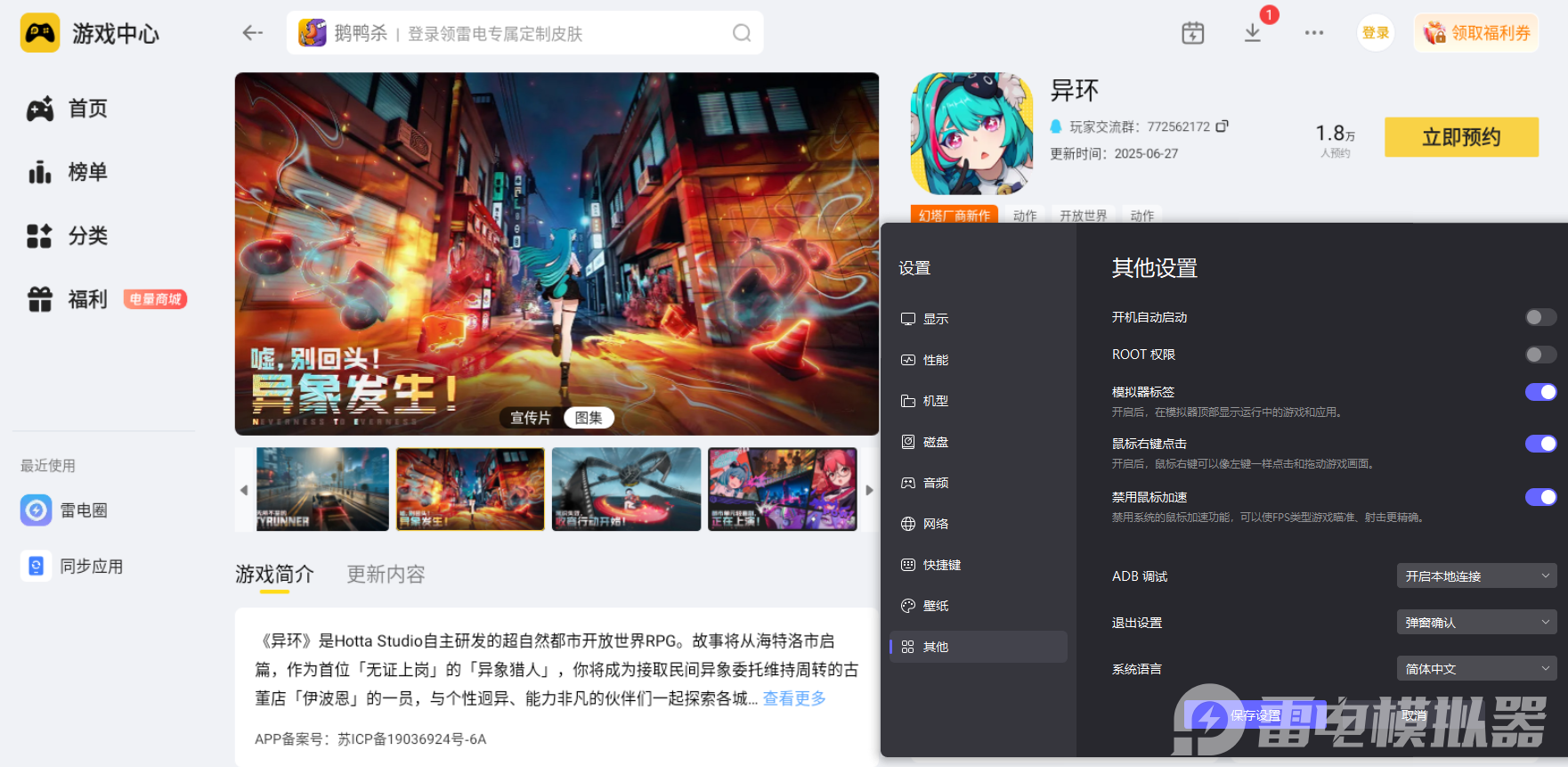 异环测试时正在火热进行中,丰富的玩法和优质的画面表现让人眼前一亮。借助雷电模拟器,玩家能在操作和画面上获得更出色的体验,充分感受这款开放世界手游的魅力,用更舒适的方式踏入这个充满惊喜的都市世界,开启属于自己的冒险之旅,解锁更多有趣的游戏内容吧!