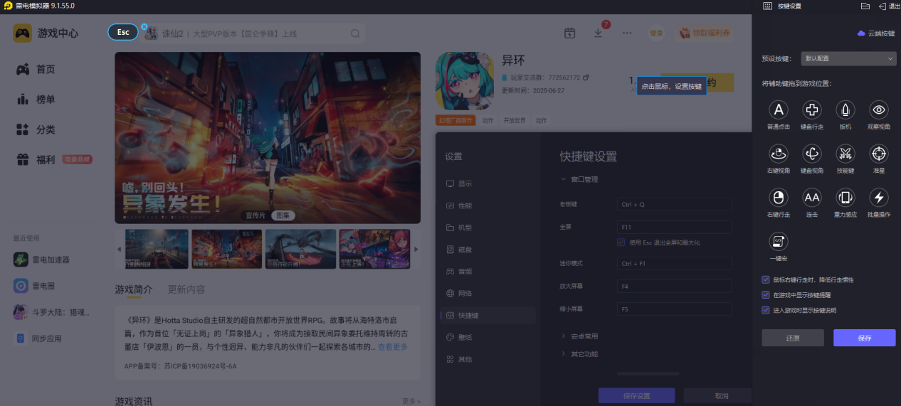 用雷电模拟器玩《异环》,可以设置键盘鼠标映射,走位、攻击、释放技能都比手机触屏更精准。做异象委托、刷地图怪物时,能快速锁定目标,减少操作失误,相同时间内可以完成更多任务、击败更多怪物,甲硬币获取效率直接提升。