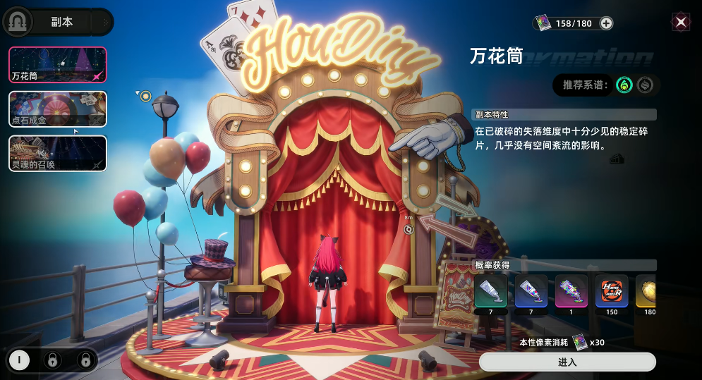 万花筒:作为15级马戏团幻境,场景分多个不同的层级,首层的时候,我们需要去清小怪,中层则是去解机关,到了顶层打BOSS即可。