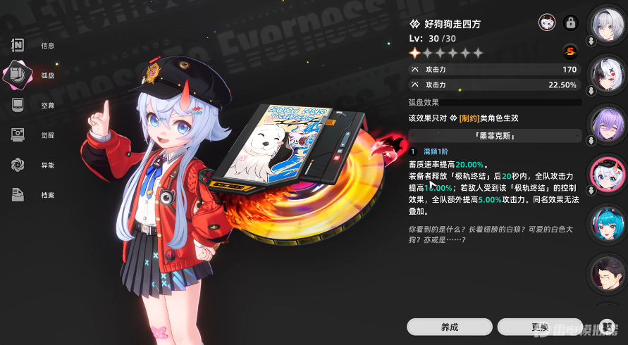 作为游戏内的新手角色来说,他的灵活性表现还是很不错的,而且定位战术辅助,得到了很多玩家喜爱,主要是普攻的时候,使用左轮手枪并引爆记忆碎片造成高额伤害,还能附加让敌人混乱的效果;闪避更是能成功的触发短时间无敌,操作起来的容错率高;解谜时能快速重置错误的操作,对于新手玩家来说比较的友好,在技能点上更是能自由分配,不论是输出还是辅助都是可以的,可以适配多个不同的队伍组合。