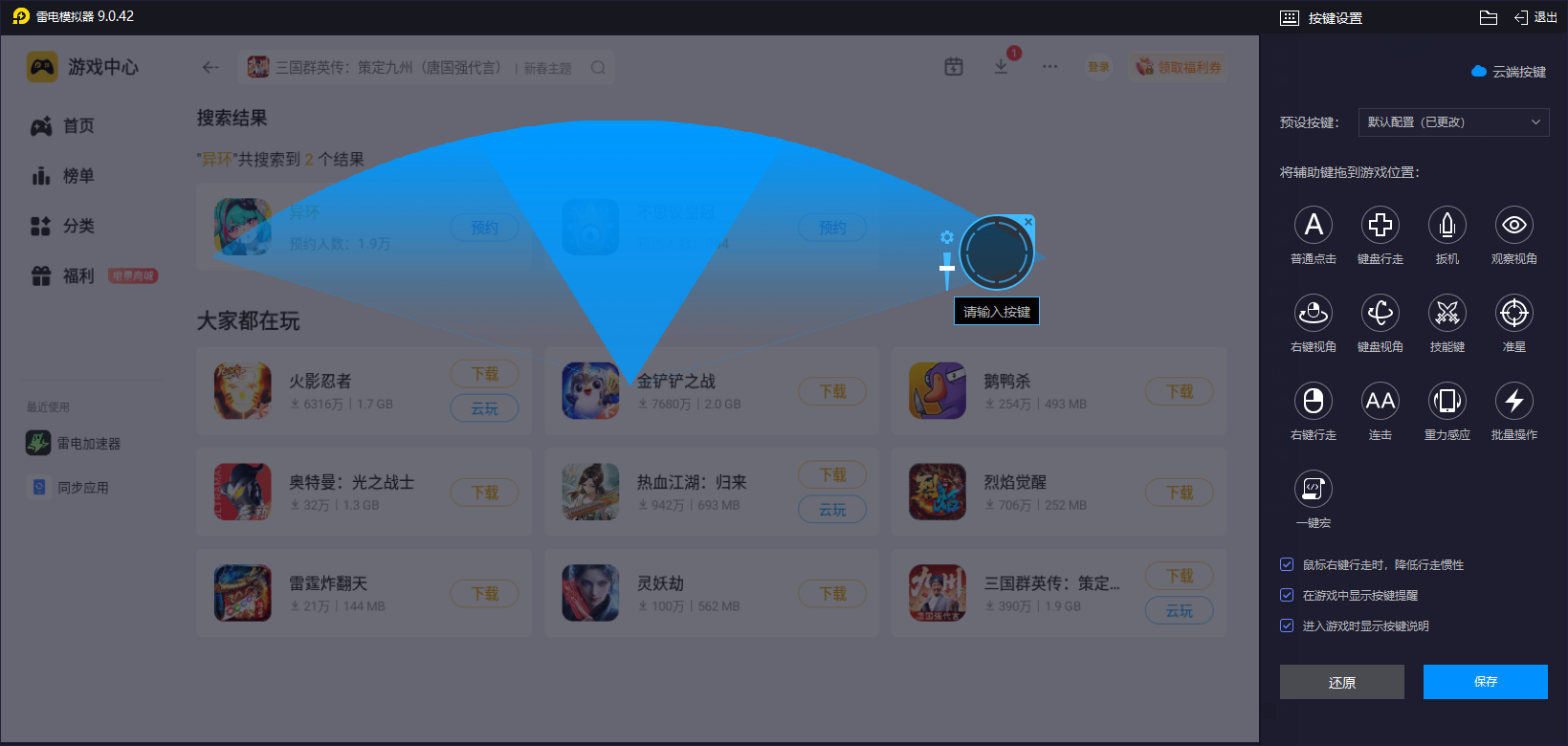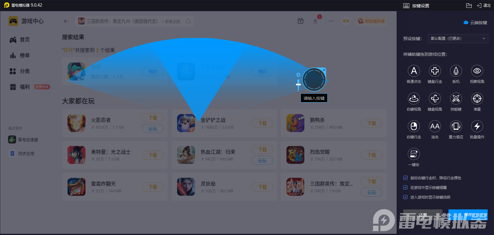雷电模拟器带来的按键自定义功能表现出色,可以让玩家把角色的技能、闪避、切换角色等操作绑定至键盘快捷键,比如可以把薄荷的“龙卷风”技能或零的“记忆碎片引爆”设为一键触发,避免手机触屏误触导致的连招中断,而且对于一些高频操作的应对上也会更加的轻松,大家不用再担心会有失误等方面的问题。