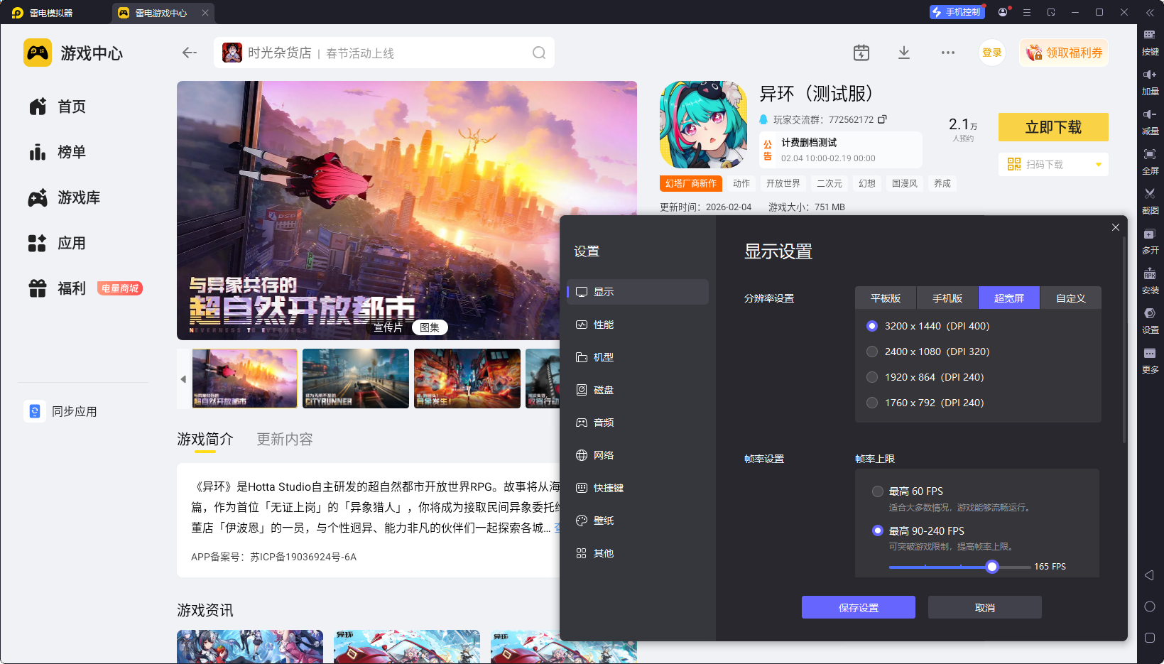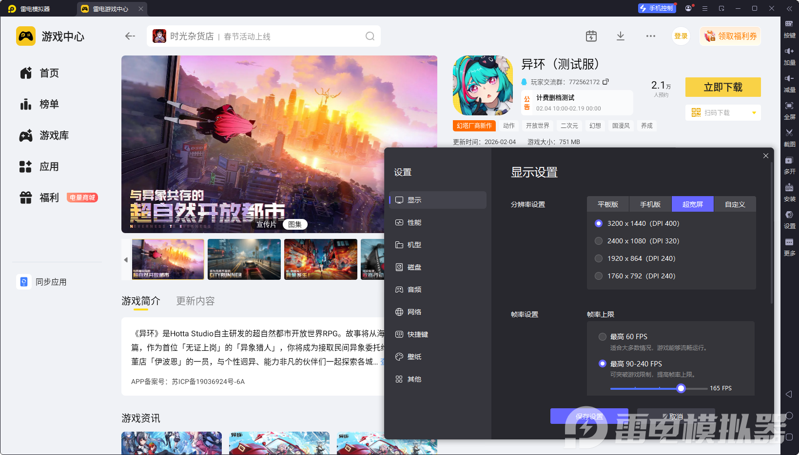 虽然异环有移动端,能让玩家随时随地开启冒险,但作为一款采用虚幻5引擎打造的开放世界游戏,其复杂的战斗机制和精细的场景细节,在移动端受设备限制难以完全展现,而雷电模拟器能完美解决这一问题,带来远超移动端的游玩体验,核心优势如下。