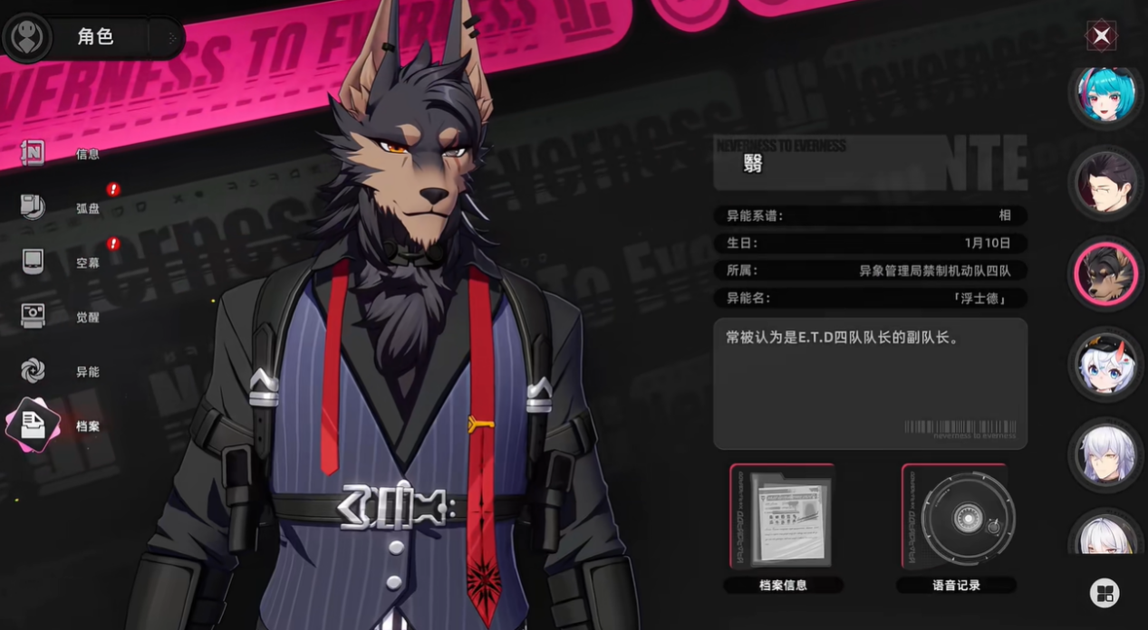 异环翳隶属于意向管理局禁置机动队,担任副队长一职,拥有狼首人身的独特外形,释放技能时会佩戴专属狼头面具,神秘感拉满。其核心定位是近战突击型输出,凭借影子形态的高机动性和高额穿甲伤害,擅长切入战场、收割残血,同时具备极强的地图探索能力,是兼顾战斗与探索的全能型角色,但操作门槛较高,不适合新手直接上手。
