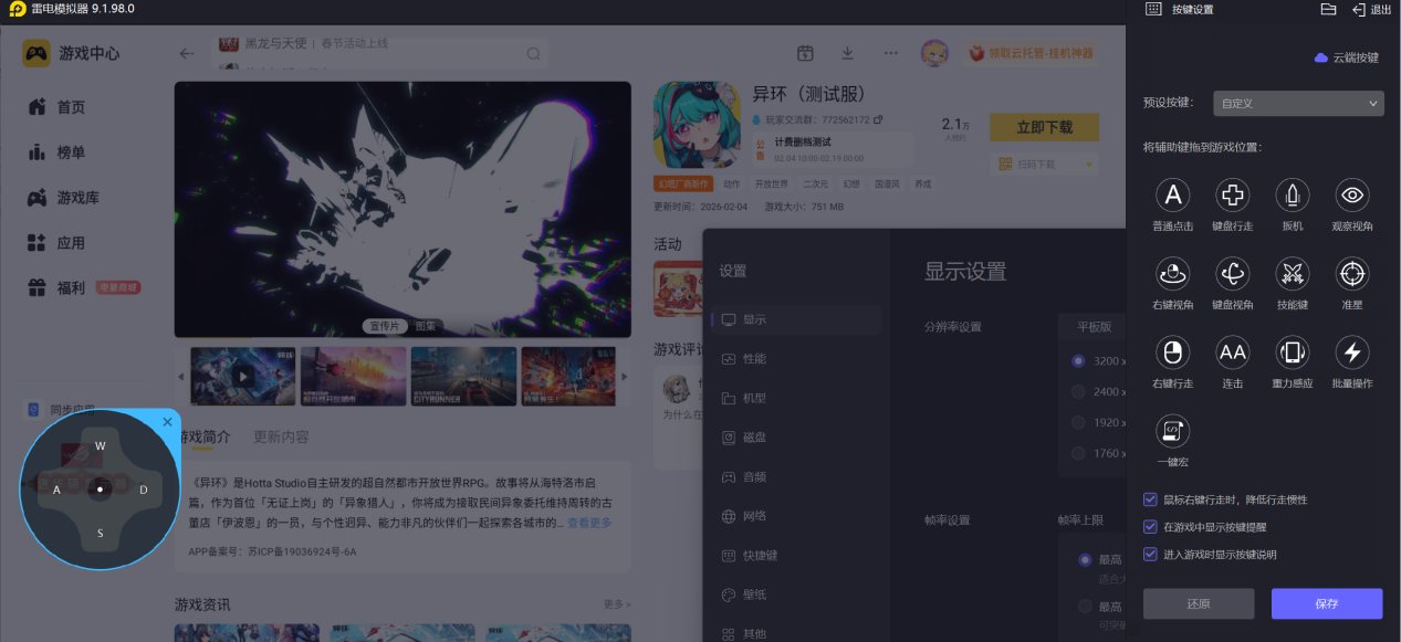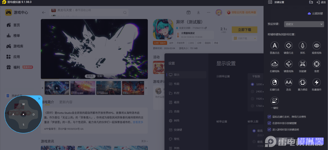 备受期待的都市幻想开放世界异环已于近期开启异环共存测试。作为上线前最重要的版本验证,本次异环共存测试带来了完整序章剧情、可自由探索的整片城区,以及大富翁式抽卡等创新玩法。从街角蜷睡的流浪猫到拉面摊升腾的热气,无数交互细节让城市真正“活”了起来。然而手机小屏上拥挤的技能按键与模糊的字体,难免拖慢节奏,此时雷电模拟器便成了体验升级的关键。