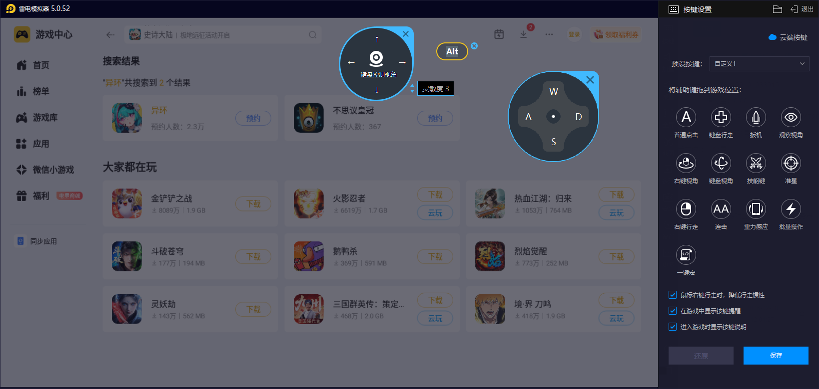 要知道,雷电模拟器支持自定义按键设置,玩家可根据峰林别墅的不同操作需求,灵活绑定专属键位,比如召唤载具、释放房屋管家功能、切换家具布置模式等高频操作,都能通过鼠标点击或键盘快捷键一键触发,无需像移动端那样反复点击屏幕,操作效率显著提升,重点是精准度也会更高哦。