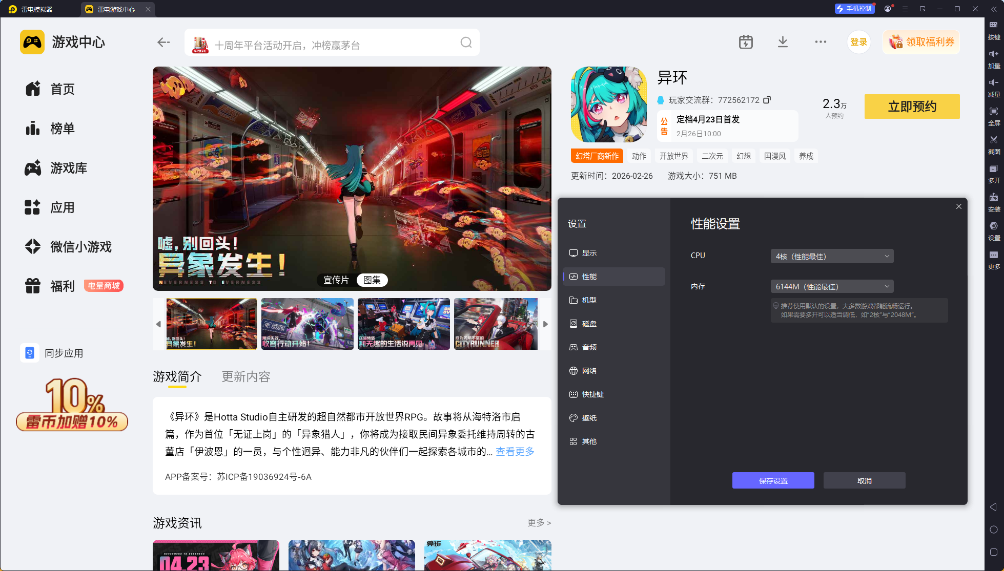 性能稳定不卡顿,联机体验无干扰。异环联机时需要实时同步多人操作数据,手机端易出现发热、卡顿、掉帧等问题,影响协作体验。雷电模拟器针对异环进行了专项优化,能有效降低设备负载,即使长时间联机游玩也能保持流畅,杜绝因卡顿导致的联机断开、操作延迟等问题,让玩家专注于与好友的互动协作。