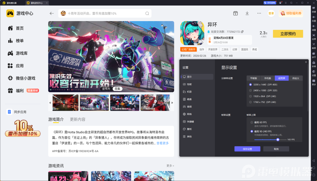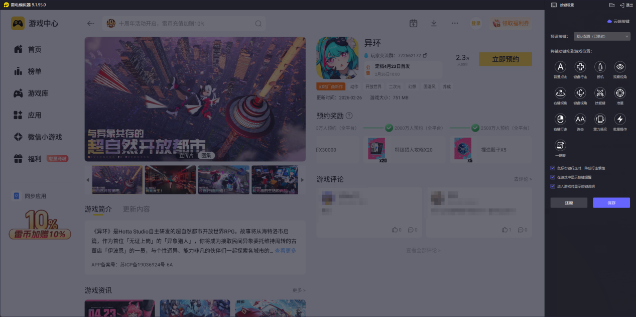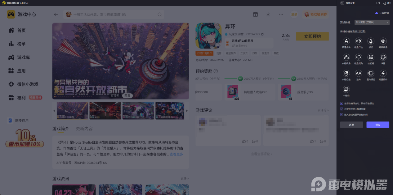 想把异环的开放世界与高画质完全展现,电脑端用雷电模拟器能大幅提升体验,优势十分明显。