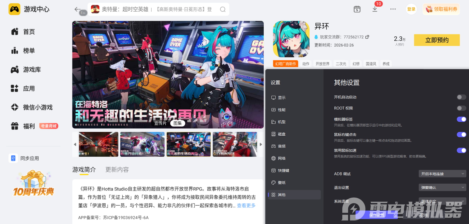 异环狼是《异环》里机制独特、战力出色的角色,熟练掌握他的玩法能大幅提升游戏体验。用雷电模拟器在电脑上游玩,操作更精准、画面更清晰,让你轻松发挥他的全部实力。不管是跑图探索还是挑战高难度关卡,都能以更舒服的状态享受游戏乐趣。