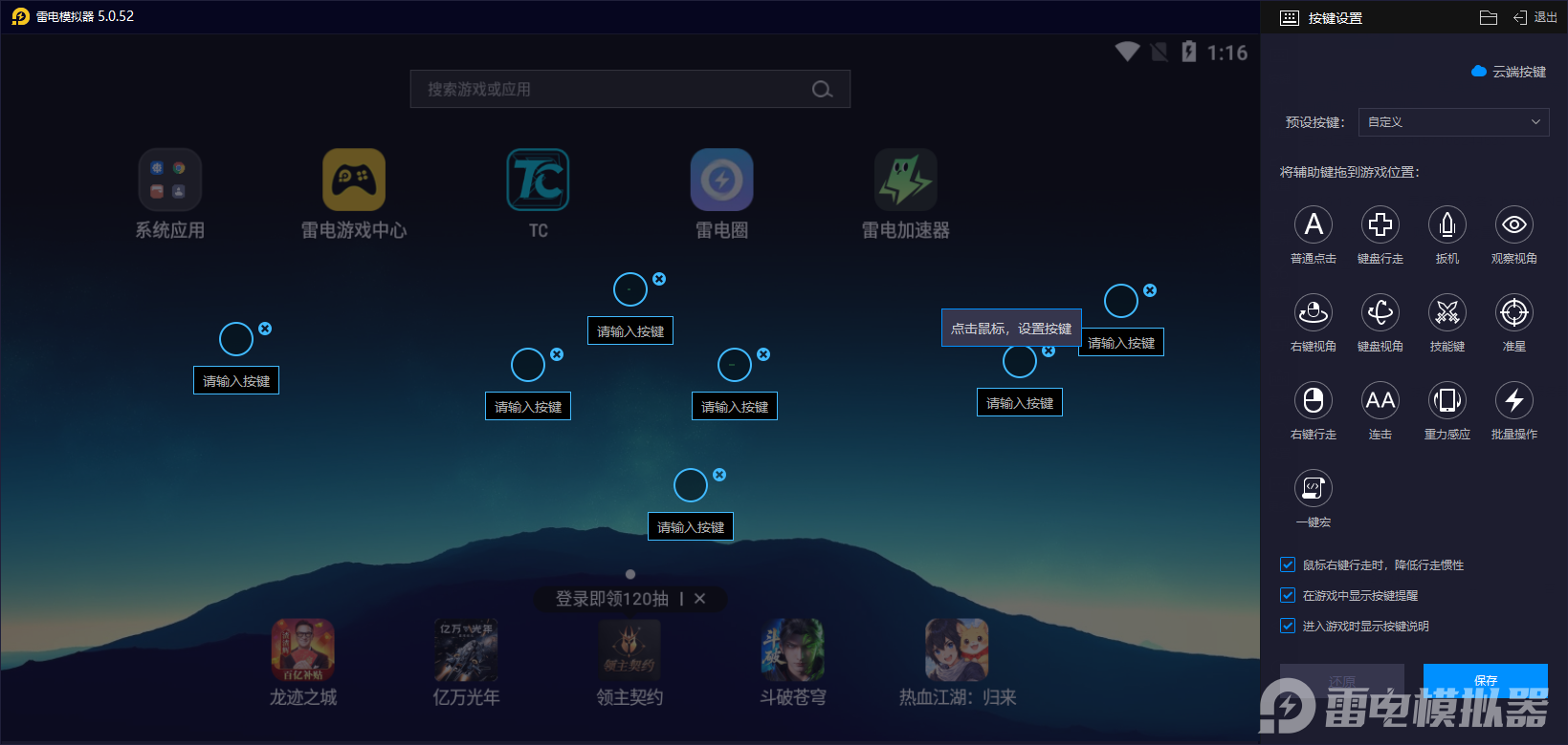 雷电模拟器内置热门游戏的预设按键方案,无需手动调试即可快速上手,大幅降低操作门槛。同时,支持根据习惯自定义键位,把复杂操作简化为键鼠组合,避免触屏误触,在异环的战斗、探索场景中,能实现更精准的控制。