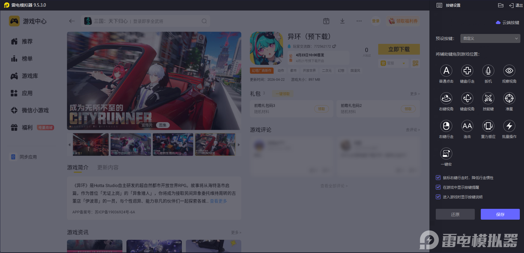 想要轻松体验异环电脑版,就用雷电模拟器,它凭借超强性能和出色竞技手感,打破设备限制,让你在大屏上尽情探索异环的超自然都市,开启精彩冒险之旅。