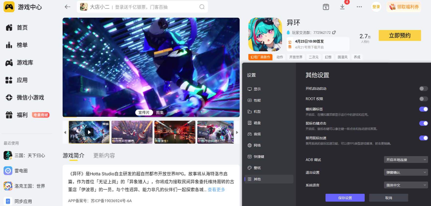 在这里,小编建议大家选用雷电模拟器在电脑上游玩异环,适配各类游戏探索和对战相关游玩场景,能够全方位提升整体游戏游玩感受。