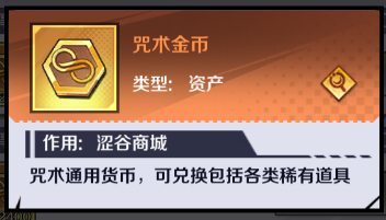 参与该玩法成就奖励中,可获得“咒术金币”,该金币可在“涩谷商店”中进行道具及角色兑换。
