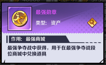 到达段位后,可以领取相应数量的“最强勋章”,使用勋章可以兑换相应道具及角色。