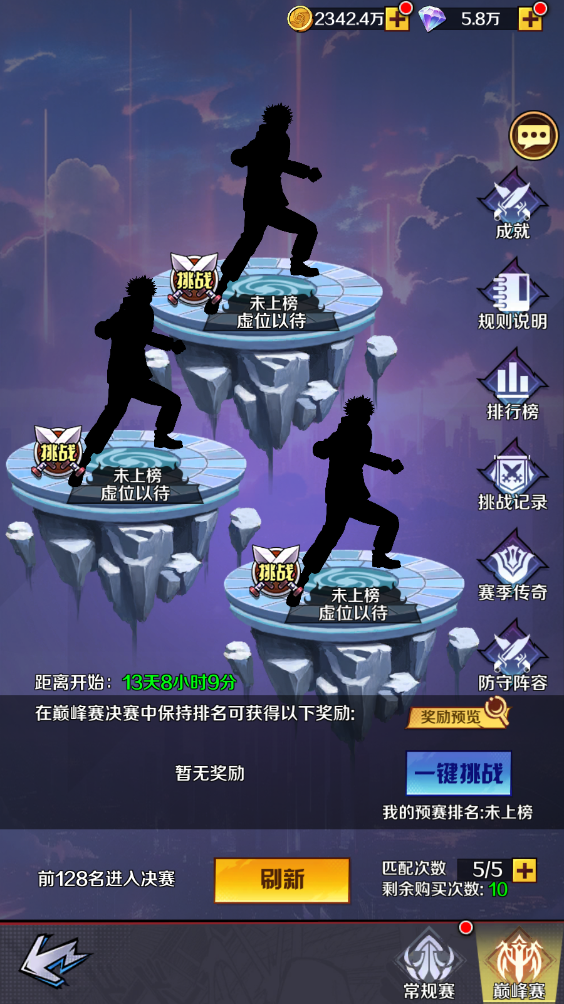 - 参与巅峰赛(预赛)的选手将采用天梯制的对战规则,挑战胜利后直接替代对方排名。