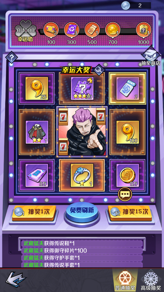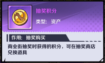 每次可获得“抽奖积分”,可用于“抽奖商城”进行道具及角色兑换。