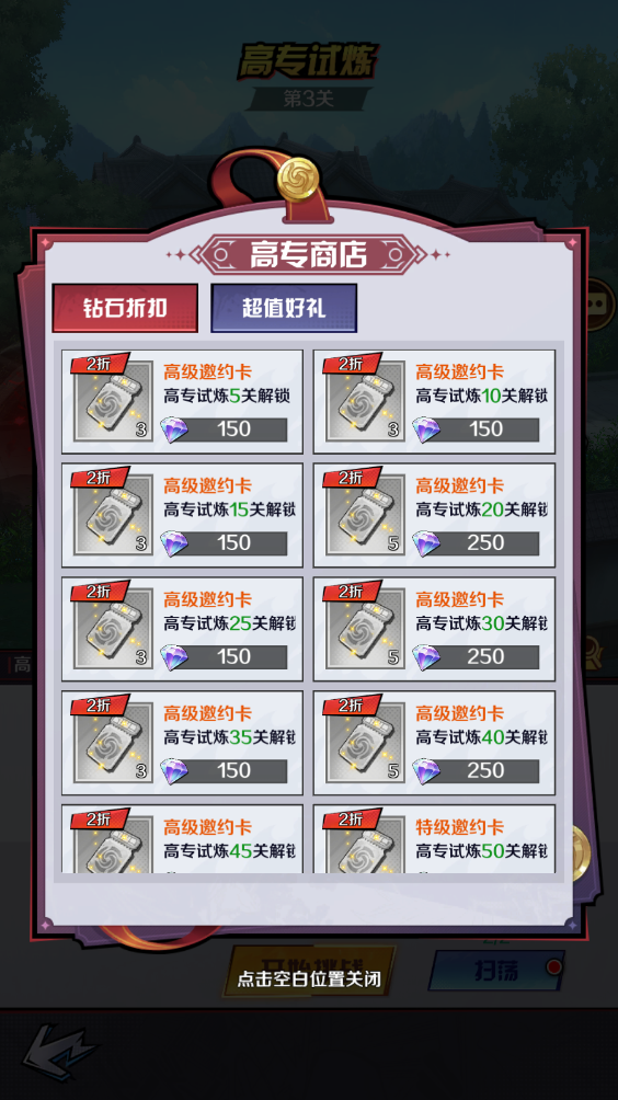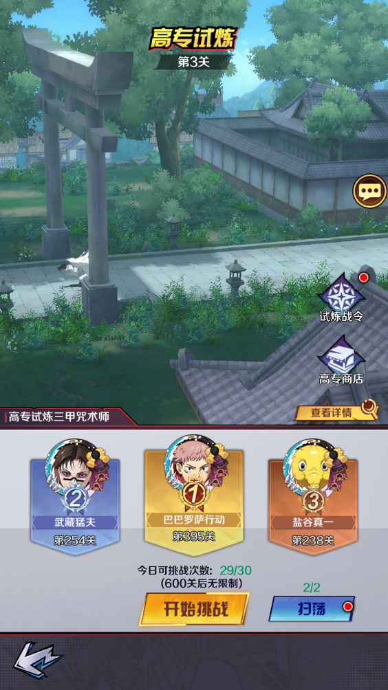 高专试炼属于爬塔副本玩法,爬塔层数越高,可以解锁的商店奖励越多。【高专试炼玩法说明】:1、该玩法每天限制挑战次数(每日30次,600关后无限制);界面下方可以查看到挑战前3名排行玩家;挑战层次越高,在“高专商店”中解锁道具越多,里面道具折扣非常低,性价比特别高。注:内容仅供参考,实际以游戏内为准。