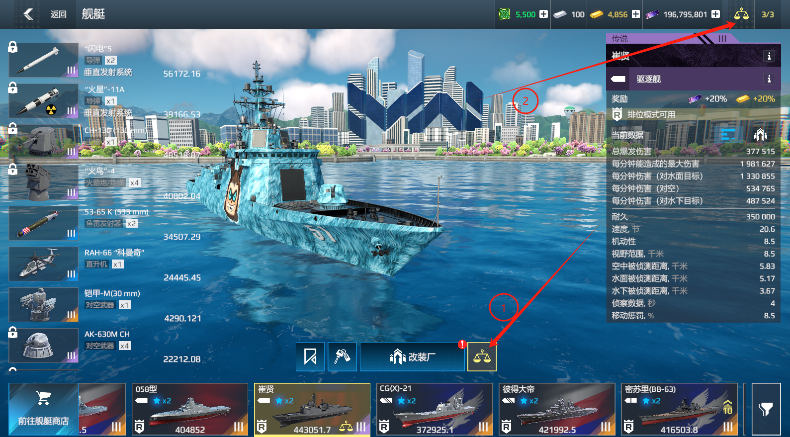 • 只能对比同一类型和阶级的道具。不同舰种的舰艇可相互对比。