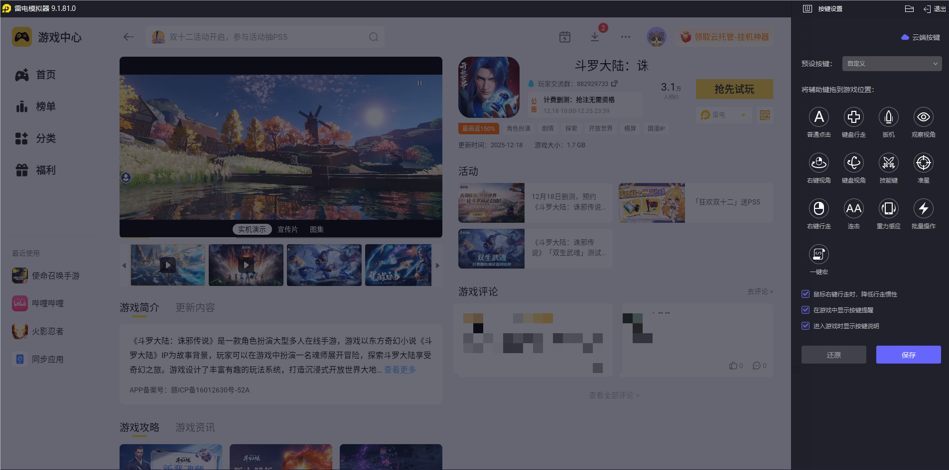 无论是哪种武魂,其技能释放的精准度与画面清晰度都会直接影响战斗结果。雷电模拟器通过两大核心功能,为武魂选择后的实战体验提供全面支持。