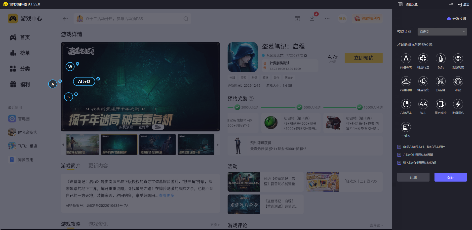 新手刚接触游戏时,触屏操作容易出现技能误触、走位不精准的问题,这在BOSS战和机关解谜中很影响通关效率。雷电模拟器的键鼠适配功能特别实用,你可以根据自己的操作习惯按需设置键位,键鼠的操控手感远超触屏,不管是张起灵“麒麟血”的瞬时爆发释放,还是吴邪破解机关时的精准点击,都能稳稳把控,有效减少操作失误,让通关更轻松。