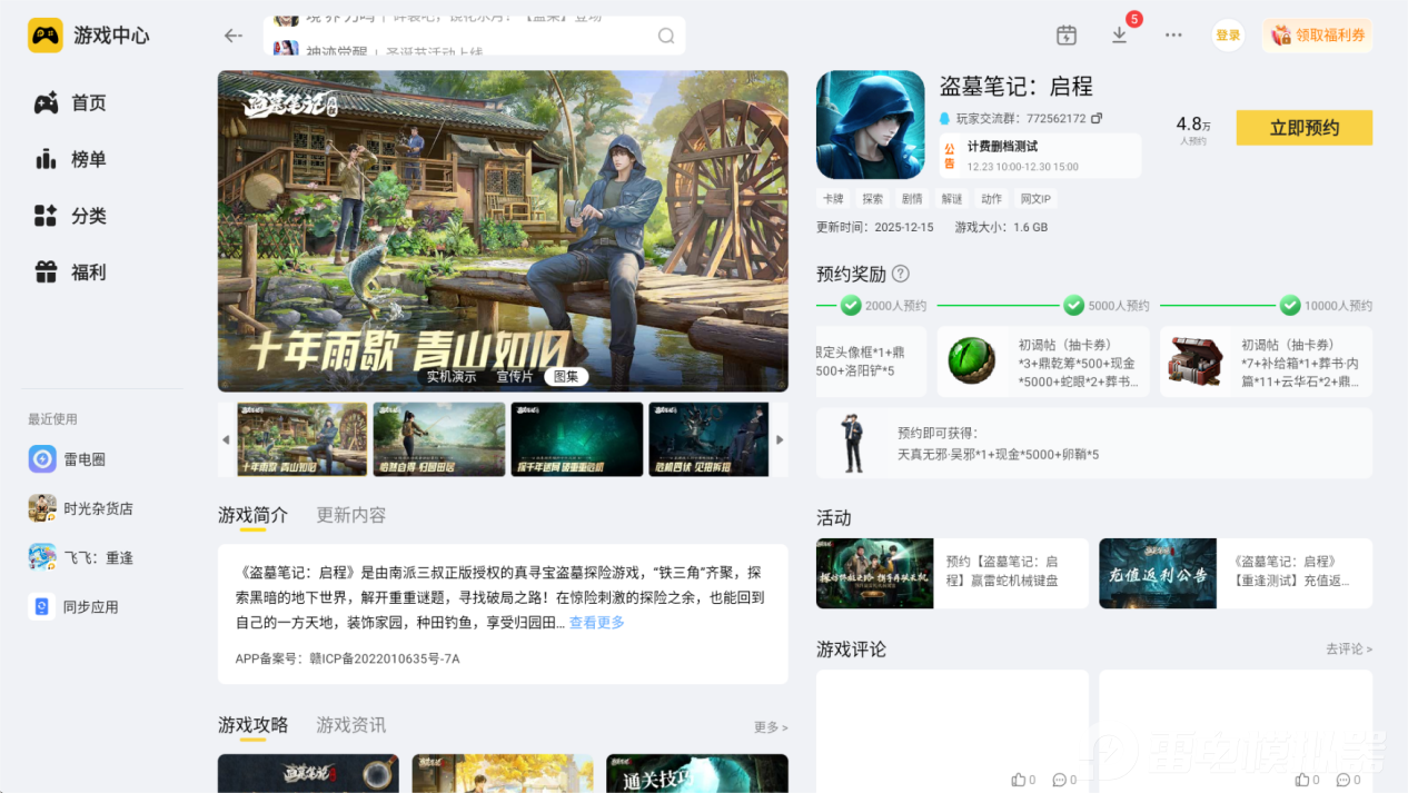 除了已结束的两次测试,《盗墓笔记启程》的正式上线时间暂未公布。两次测试为玩家提供了提前体验游戏的机会,测试期间玩家可探索古墓秘境、解锁剧情关卡,感受贴合原著的冒险氛围。想要第一时间知晓正式上线时间,建议大家下载个雷电模拟器,里面有游戏上线的最新消息。