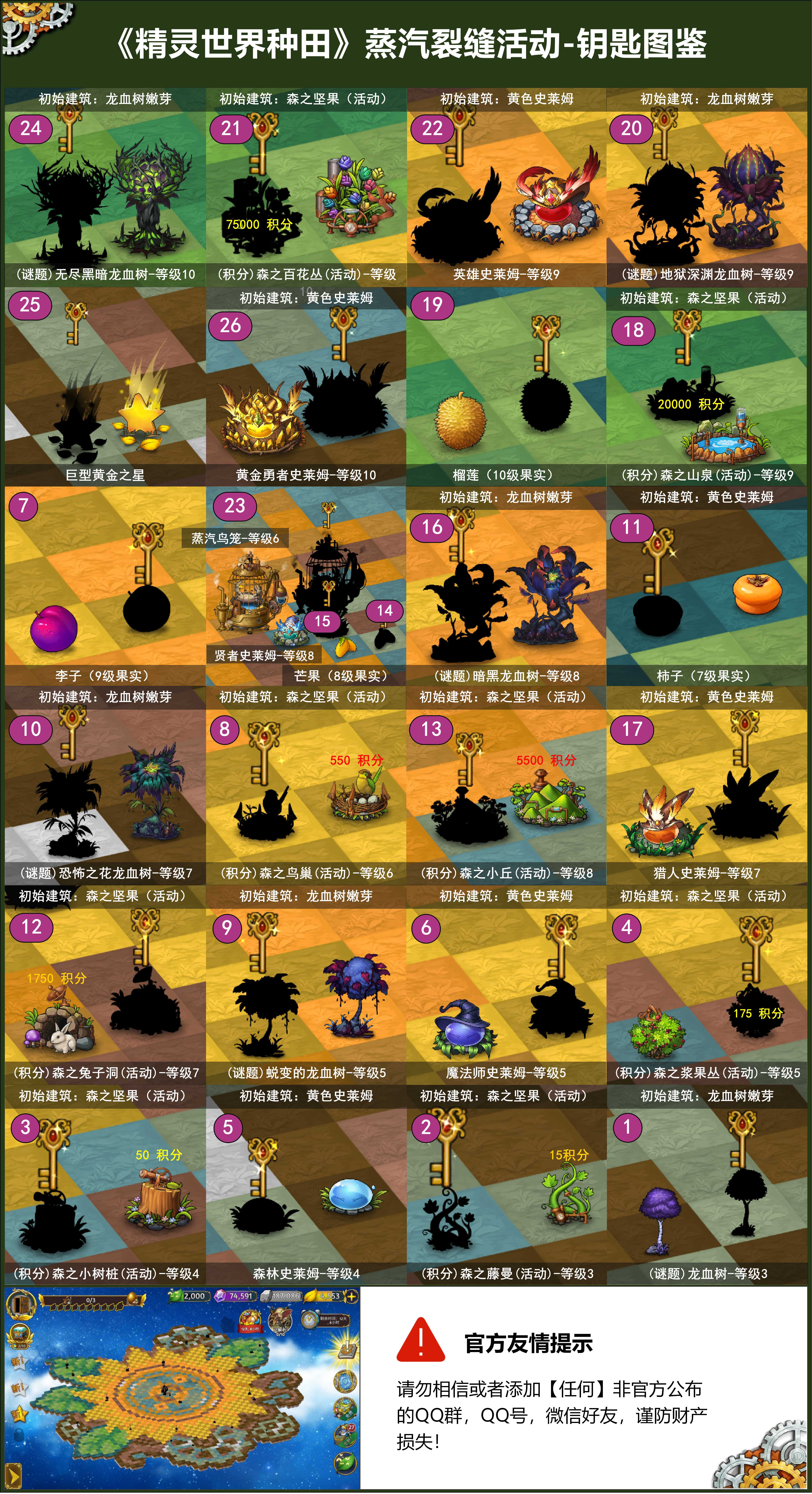 《蒸汽裂缝》活动是“泡泡机”“精灵蛋仓库”“蒸汽食人花”“诺亚之门”的产出口;