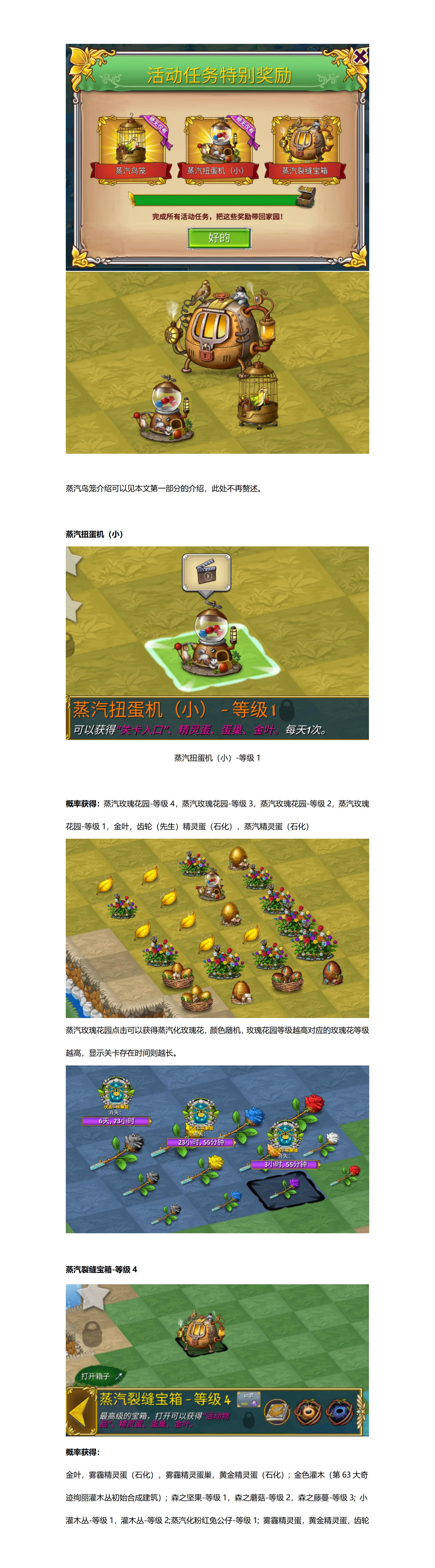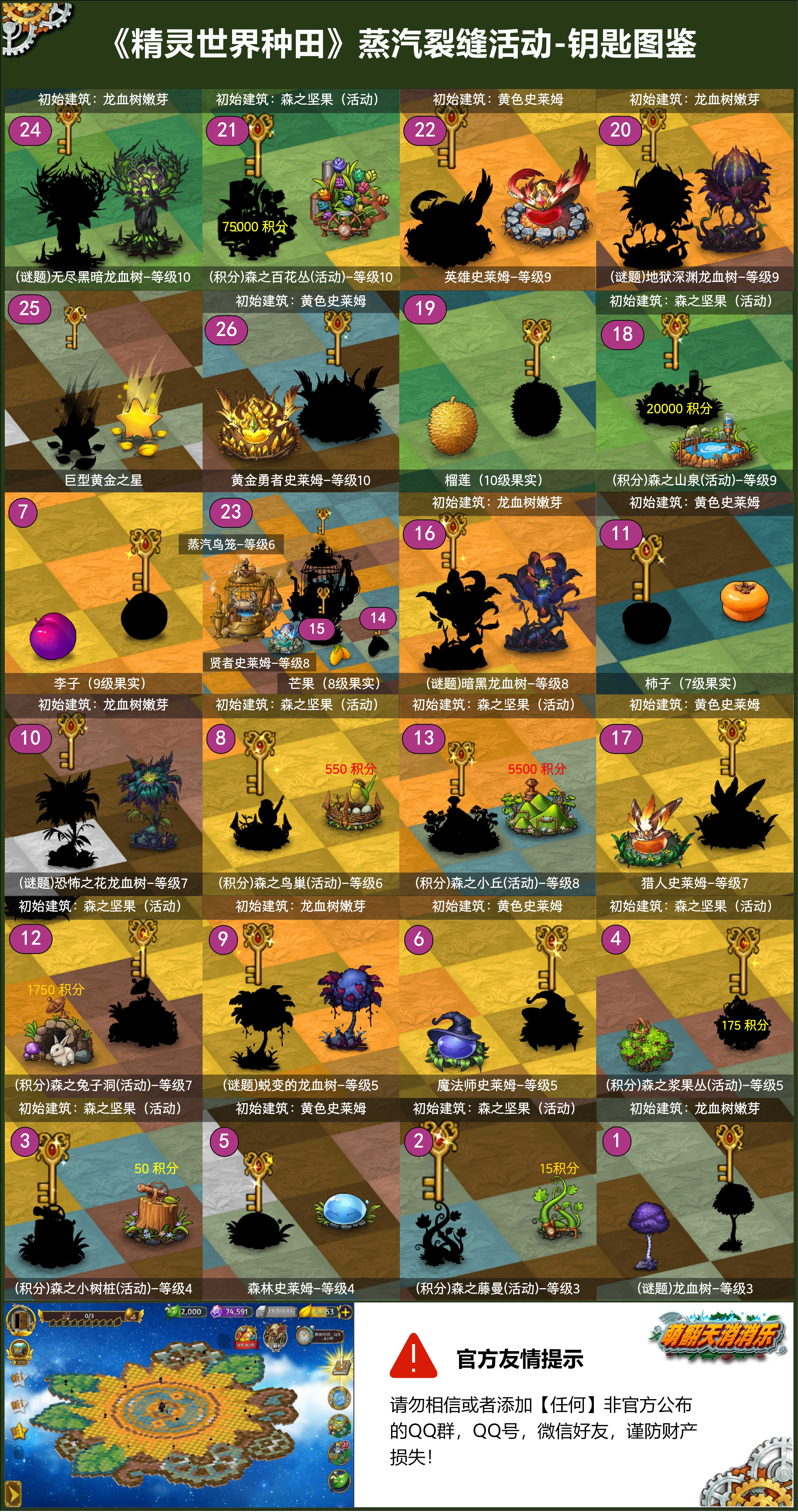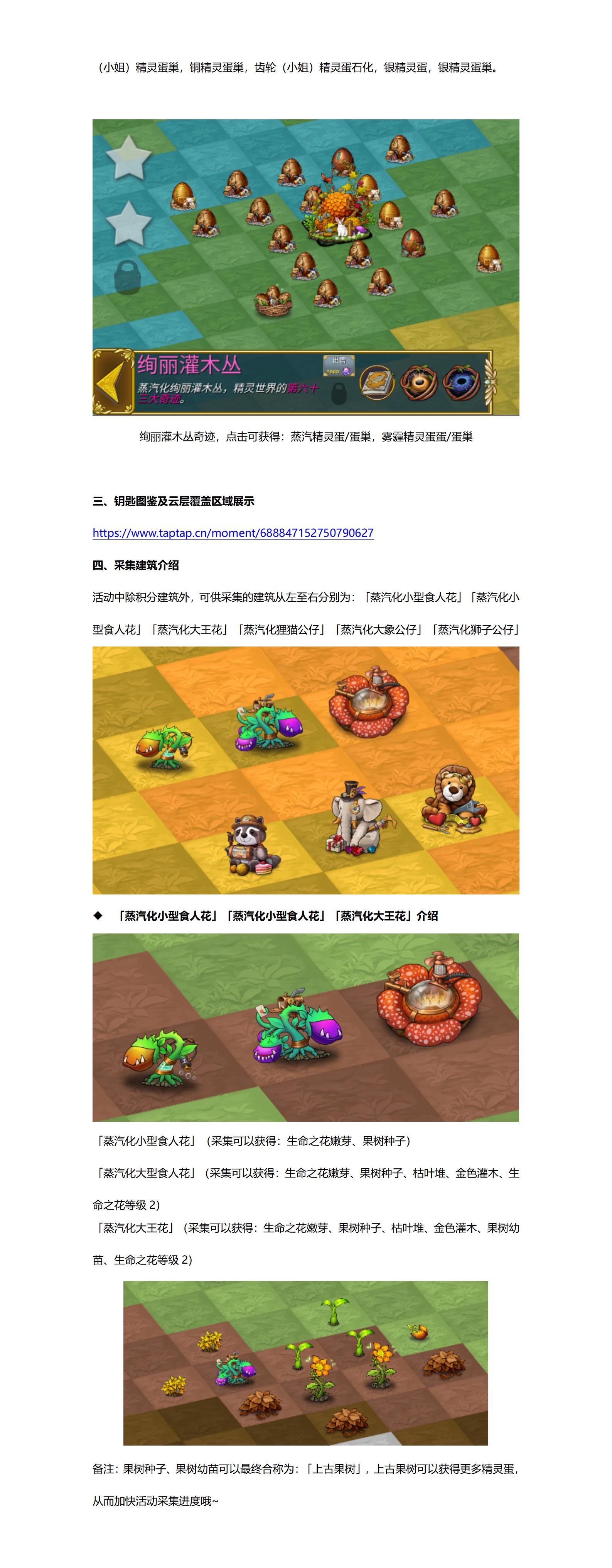 5月份第二个重磅活动【蒸汽裂缝】活动即将开启,想要“泡泡机”和“精灵蛋仓库”这两个建筑的小伙伴千万不要错过。本活动还是“蒸汽食人花”、“诺亚之门”的产出口,所以一定要定好闹钟,按时参加哦!