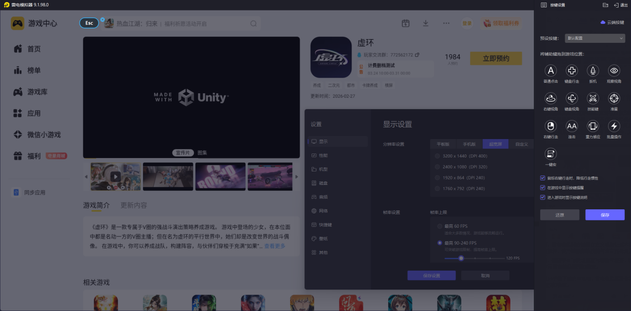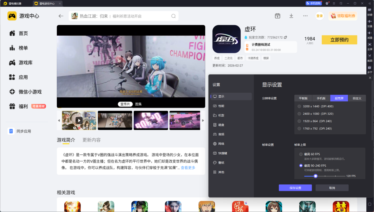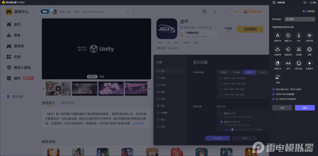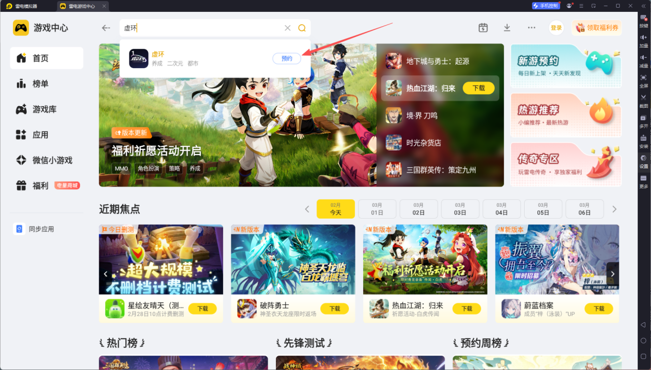 启动模拟器后,在雷电游戏中心搜索“虚环”,点击进入详情页并点击“预约”按钮,等游戏正式上线后,只需轻点“下载”并按提示完成一键安装,即可在模拟器桌面唤醒游戏图标,点击即刻接入虚环的序列战场。