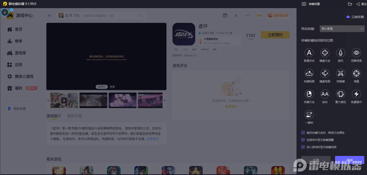 按键自定义,精准操控虚环柚恩。虚环柚恩需要频繁衔接普攻叠盾与技能反击,手机触屏操作易误触、难精准把控节奏,雷电模拟器支持按键自定义功能,可按需绑定技能、普攻键位,还能设置一键宏简化操作,适配她的护盾联动玩法,让每一次技能释放、支援反击都精准可控,轻松拿捏虚环柚恩的操作精髓。