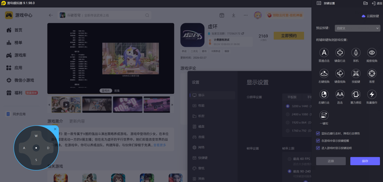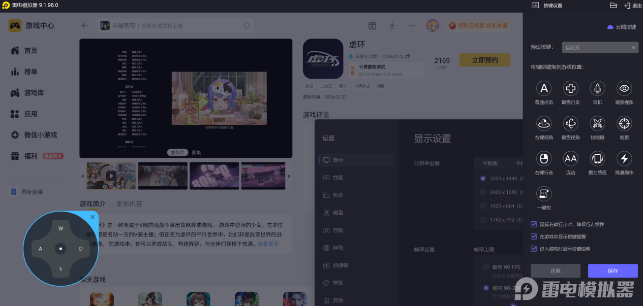 更关键的是,雷电模拟器为虚环量身定制的键鼠操作,能让技能衔接如丝般顺滑。你可以将每位角色的技能映射到键盘上,实现“光速逃跑”接大招的瞬间反应,也能用WASD精准走位,利用鼠标拖拽调整视角,彻底告别手机触屏的误触与遮挡。用键鼠打出的连招,无论是节奏还是精准度都更上一层楼。