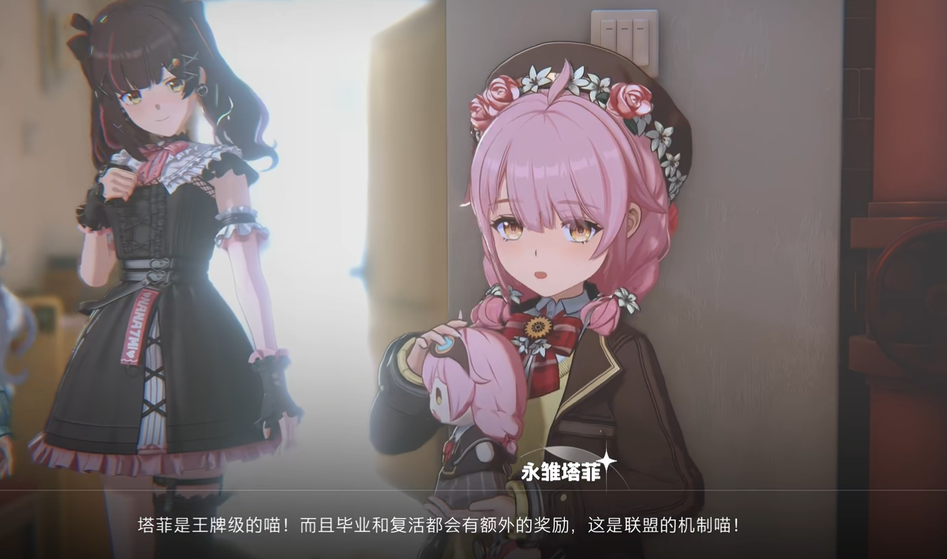 永雏塔菲,是兼具输出与战术功能的核心角色,定位为远程物理输出,同时打破了传统射手与近战角色的界限,拥有不俗的输出能力的同时,生存容错率也远超普通远程角色。该角色还拥有发明家的身份设定,整体形象灵动可爱,配音贴合角色特质,在游戏的剧情篇章里有着专属的故事线,是推动游戏剧情发展、丰富游戏玩法的重要角色。